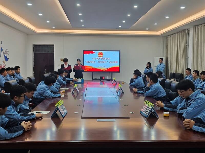 近日,山东兖矿技师学院举办学生“知宪明法,与宪同行”宪法知识竞赛。经前期笔试筛选,共有6支队伍参与决赛。