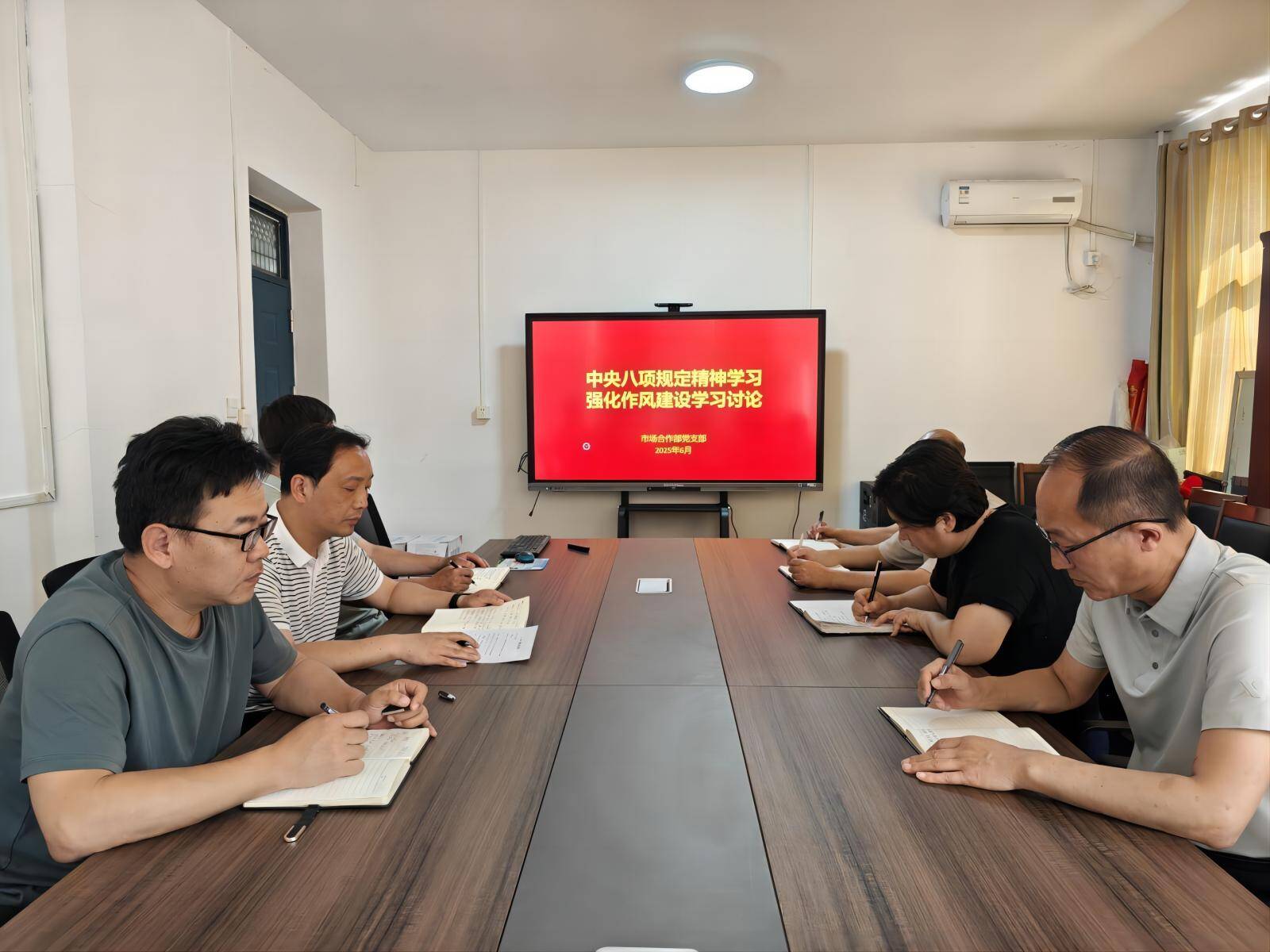 为深入贯彻中央八项规定精神学习教育,持续加强作风建设,6月10日,市场合作部党支部组织全体党员开展相关内容专题学习活动,并围绕学习内容展开深入交流讨论。