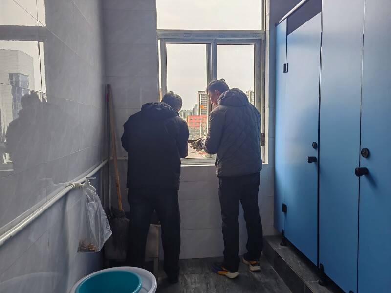 近日,技工教育部在日常安全巡查中发现,电工实训楼部分卫生间窗户因窗台过低,存在坠落安全隐患,对师生安全构成极大的潜在威胁。隐患一经发现,立即引起部室领导与负责教师的高度重视。