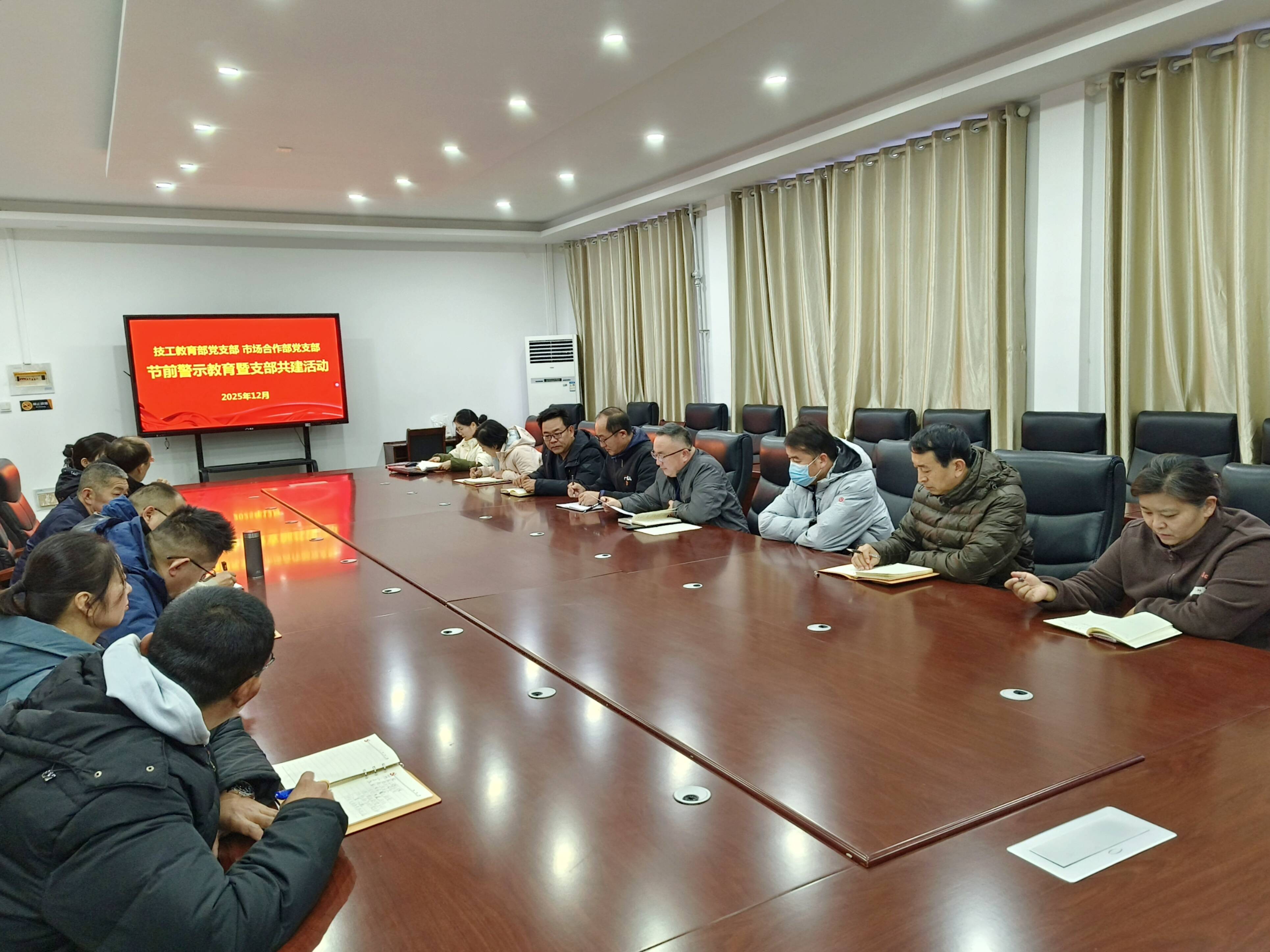 为压紧压实党风廉政建设主体责任,营造风清气正、文明祥和的节日氛围,近日,技工教育部党支部与市场合作部党支部携手联动,共同组织开展了一场别开生面的节前警示教育暨支部共建活动,以实际行动筑牢廉洁防线,凝聚奋进力量。