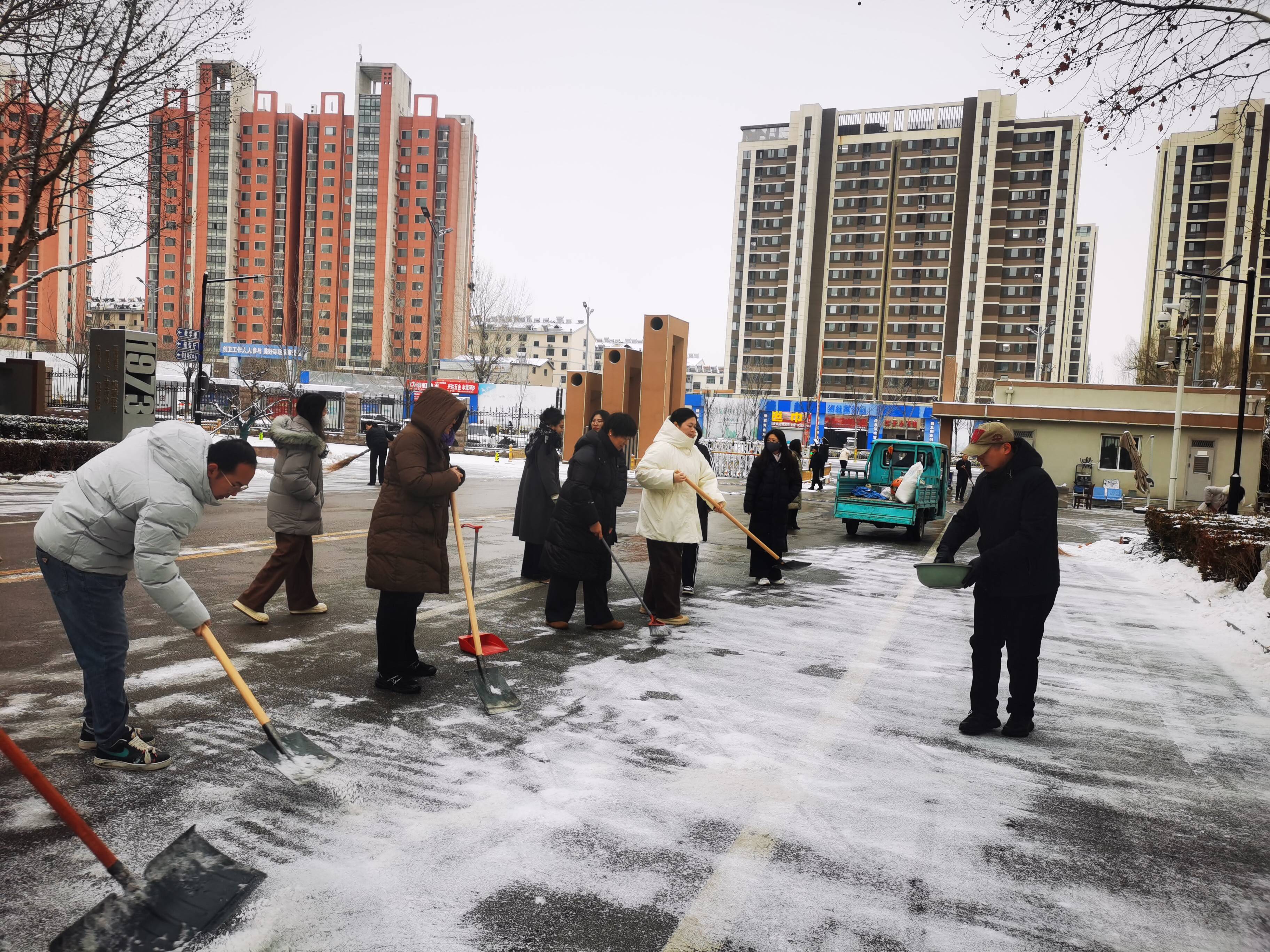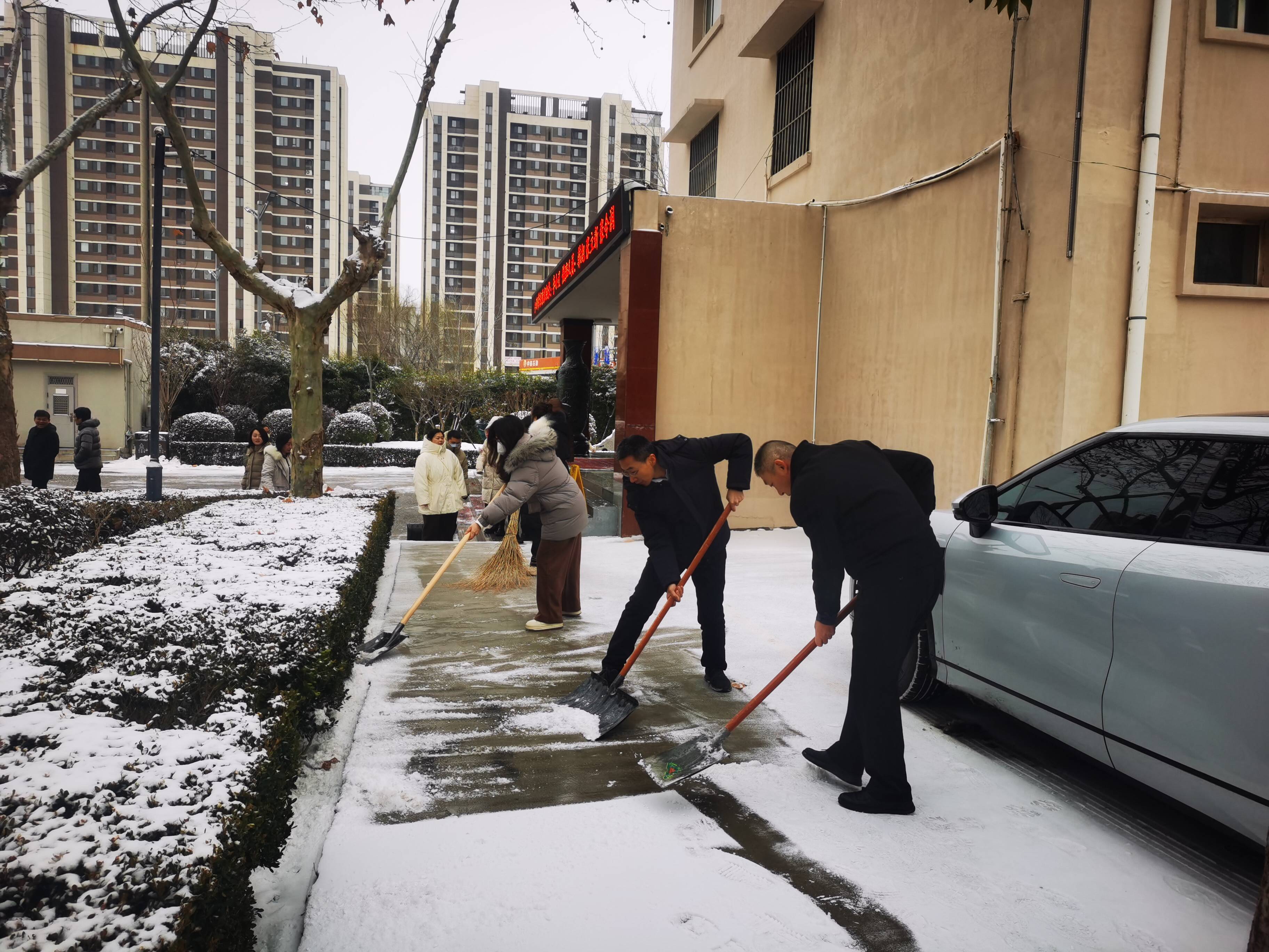 冬日寒风刺骨,雪粒裹挟着寒意拍打在脸上,却丝毫浇不灭大家的攻坚热情。清雪现场,党员干部充分发挥先锋模范作用,率先垂范、冲锋在前,主动认领校门口、主路转角等积雪冰层最厚的区域,以实干担当带动身边职工奋勇争先。全体党员干部职工斗志昂扬、干劲冲天,迅速进入工作状态,现场分工明确、配合默契。大家聚焦人行横道、教学楼台阶转角、走廊出入口等易滑关键部位,反复清理、扫清余雪、,做到不留死角、不漏盲区、不存隐患。铁锹撞击冰层的“咔嚓”脆响、扫帚清扫积雪的“唰唰”声、同事间相互鼓劲的吆喝声,在凛冽寒风中交织成一曲凝心聚力、真抓实干的奋进乐章,暖意穿透严寒,感染着现场每一个人。