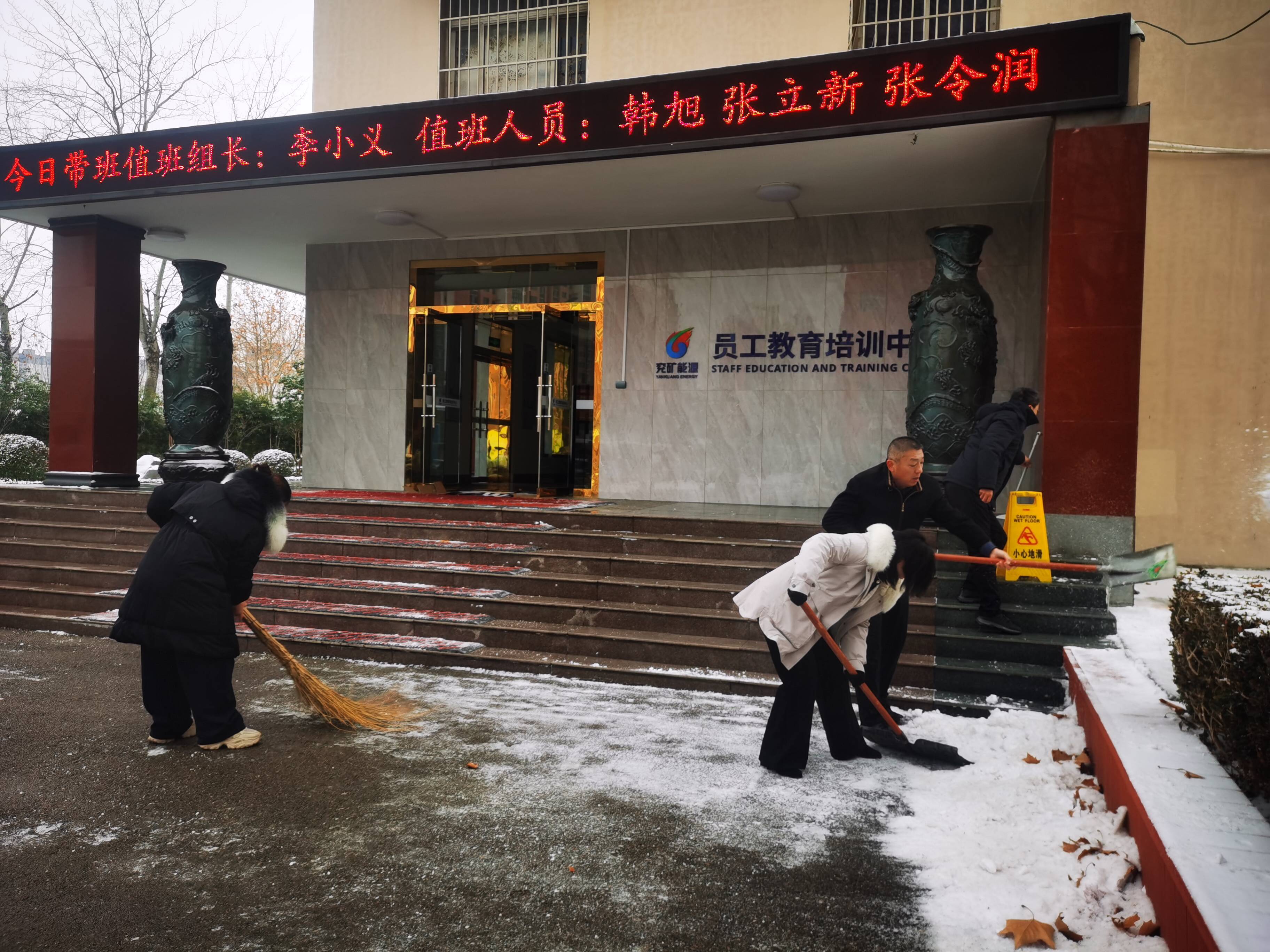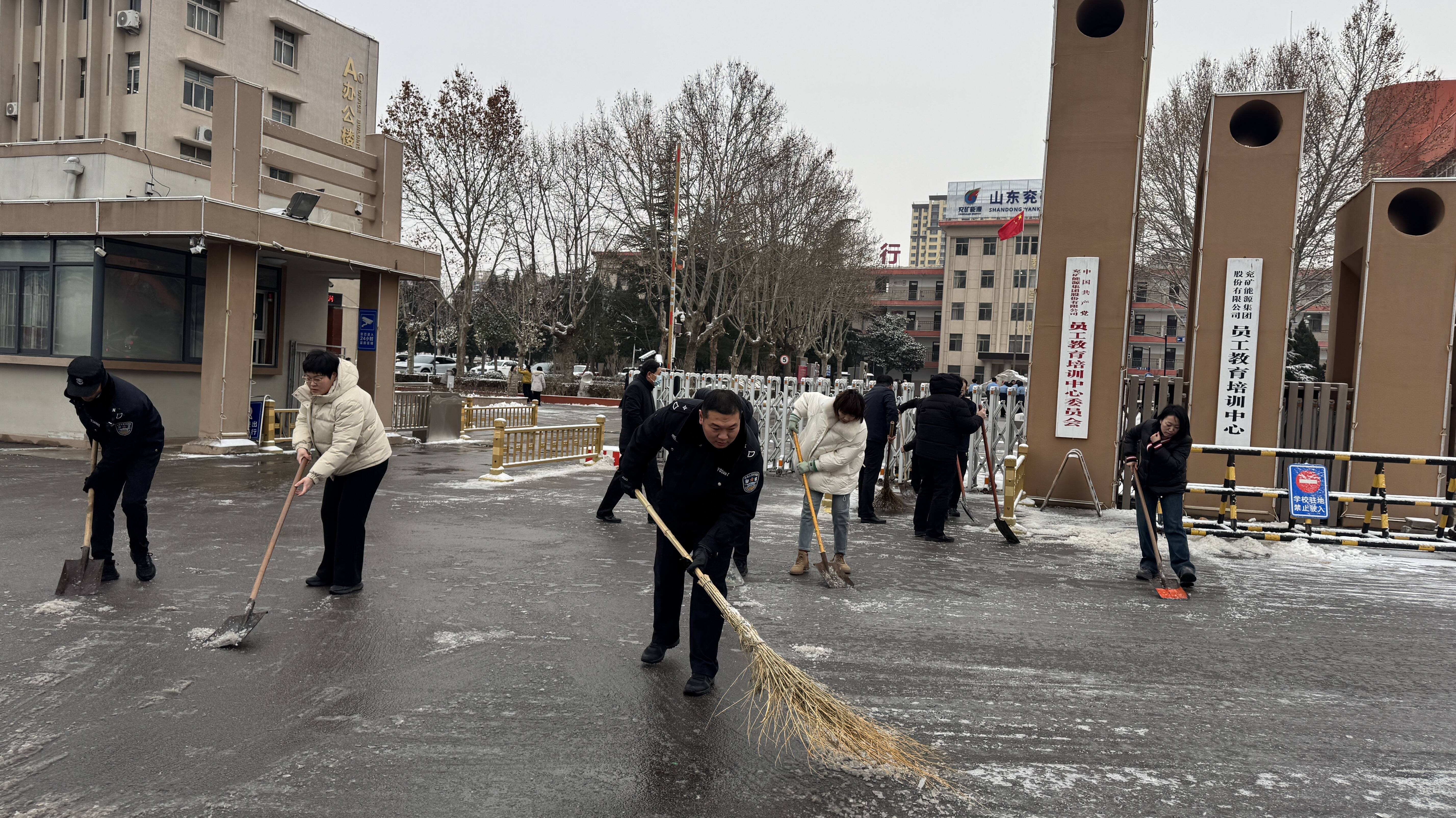 一夜风雪大作,气温骤降。清晨的教培中心校园被皑皑白雪覆盖。1月19日,持续降雪叠加低温天气,导致校园主干道、出入口、台阶等区域积雪堆积,部分路段结了薄冰,给广大师生及学员的出行带来极大阻碍。为切实守护师生职工出行安全,机关党支部迅速启动极端天气应急处置预案,坚决扛起安全保障主体责任,以雪为令、闻雪即动,号召党员干部职工主动投身清雪除冰工作,快速组建多支清雪先锋队,配齐铁锹、扫帚、除冰铲等工具奔赴校园关键点位,有条不紊开展扫雪除冰作业,用实打实的实干举措,为全体人员铺就一条安全通畅、暖意融融的出行之路。