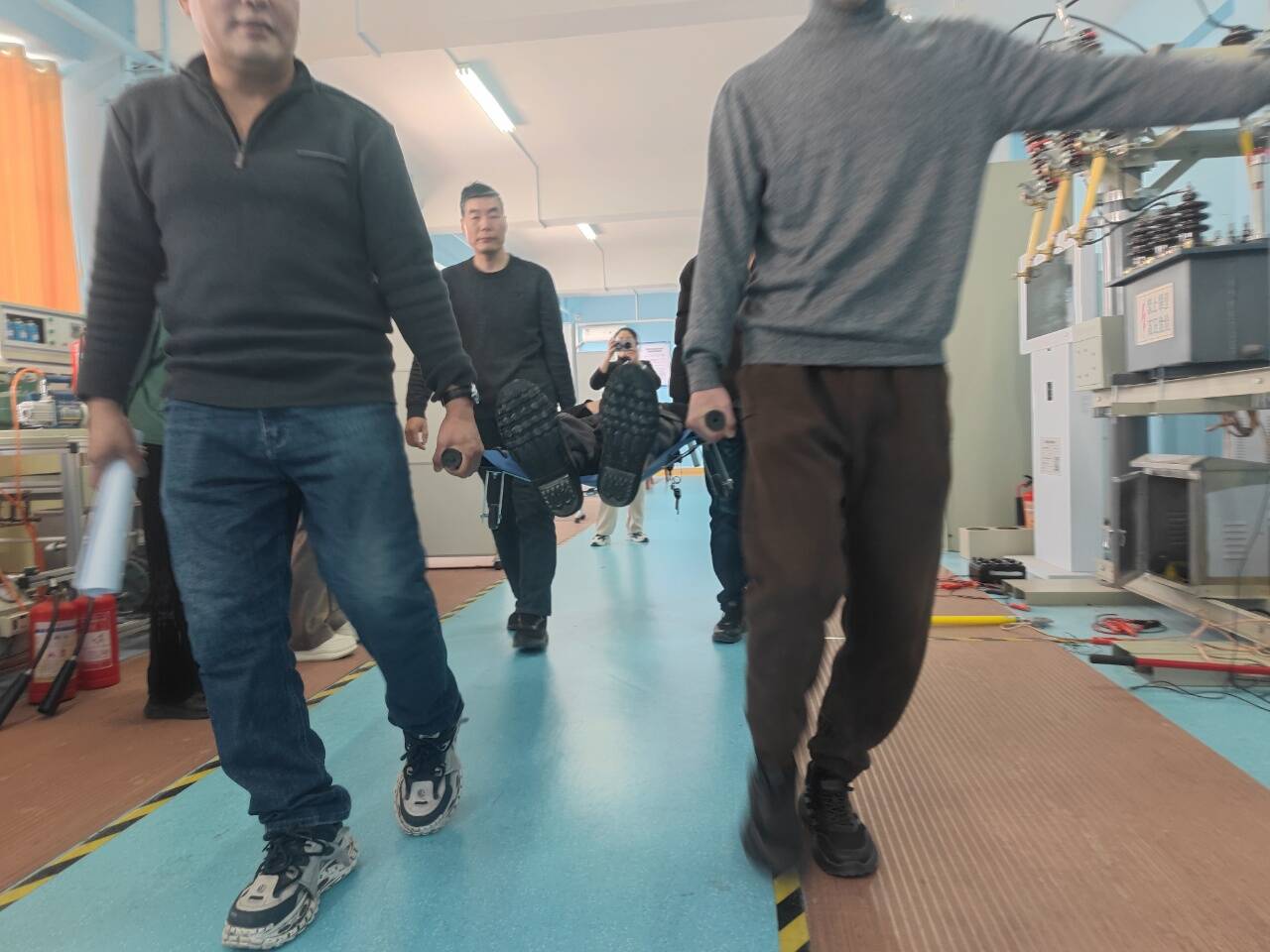 3、转运救治:待“触电者”恢复意识后,用担架转移至安全区域,等待专业医疗团队接管。