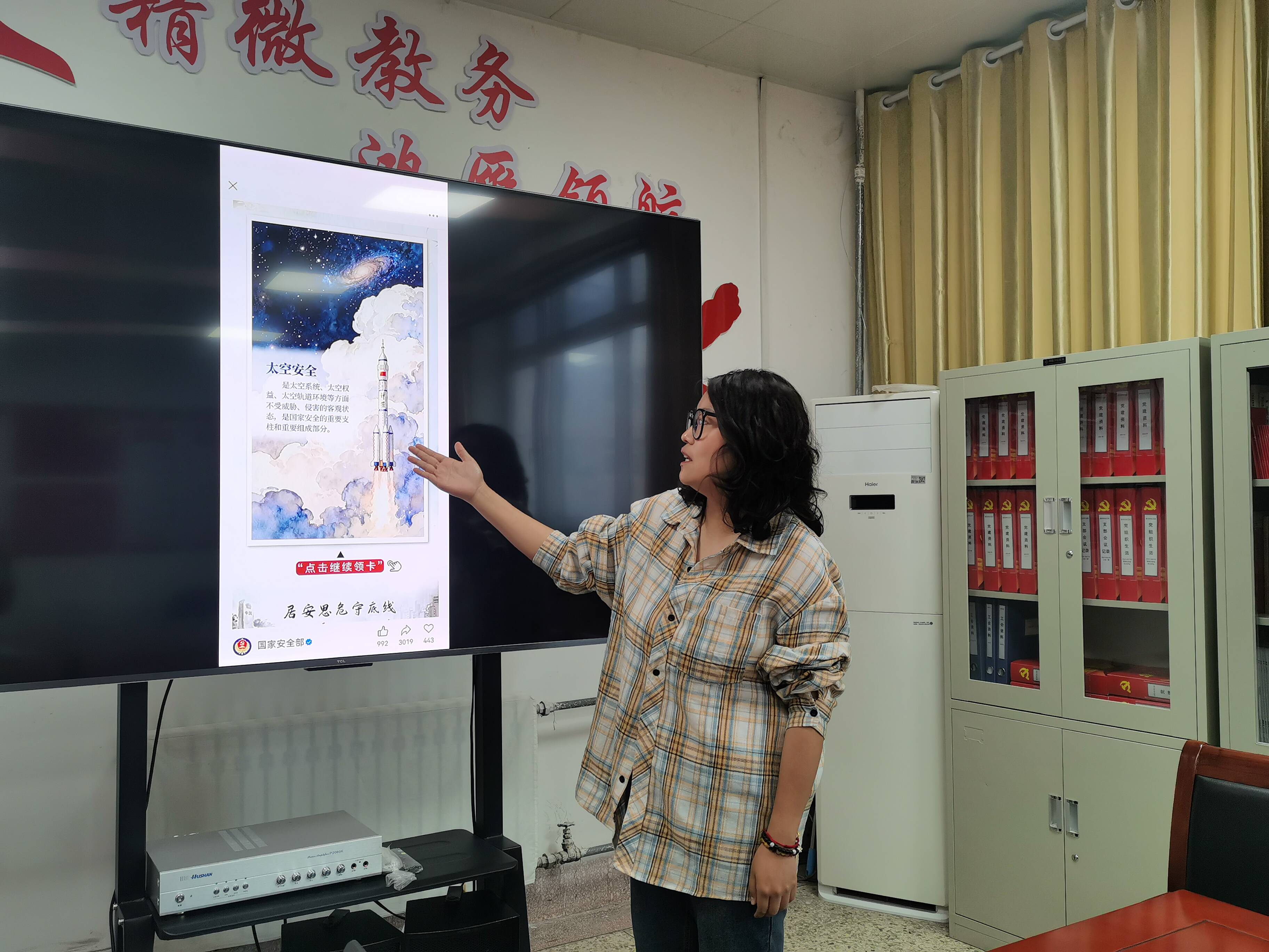 活动形式丰富务实,党员干部依次抽取国家安全守护卡,现场讲解核心要义,让国家安全理念真正入脑入心、落地生根;集体观看保密主题微电影《密战》,在真实鲜活的案例中深刻感悟保密工作的责任与担当。青年教师以点亮星星、敬献鲜花的方式,向隐蔽战线无名英雄致敬,传承忠诚奉献、默默坚守的精神品格。活动最后设置“国安知多少”知识抢答环节,以赛促学、以学促行,检验学习成效。