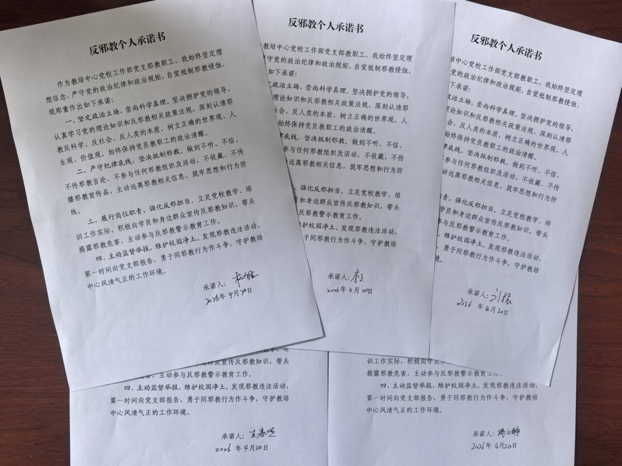 承诺践诺筑防线,压实防邪守责担当。观影结束后,支部全体教职工现场签订《反邪教个人承诺书》。全体人员郑重承诺,将自觉认清邪教危害、严守思想底线、坚定理想信念,主动学习反邪教法律法规与科普知识,自觉抵制各类邪教侵蚀,坚决远离、杜绝参与任何邪教活动。同时立足岗位职责,以身作则、率先垂范,主动传播科学理念,积极向身边同事、家人普及反邪教知识,主动检举邪教违法活动,争做反邪教的宣传者、抵制者、守护者,以个人自律筑牢基层思想防线,凝聚全员反邪防邪合力。