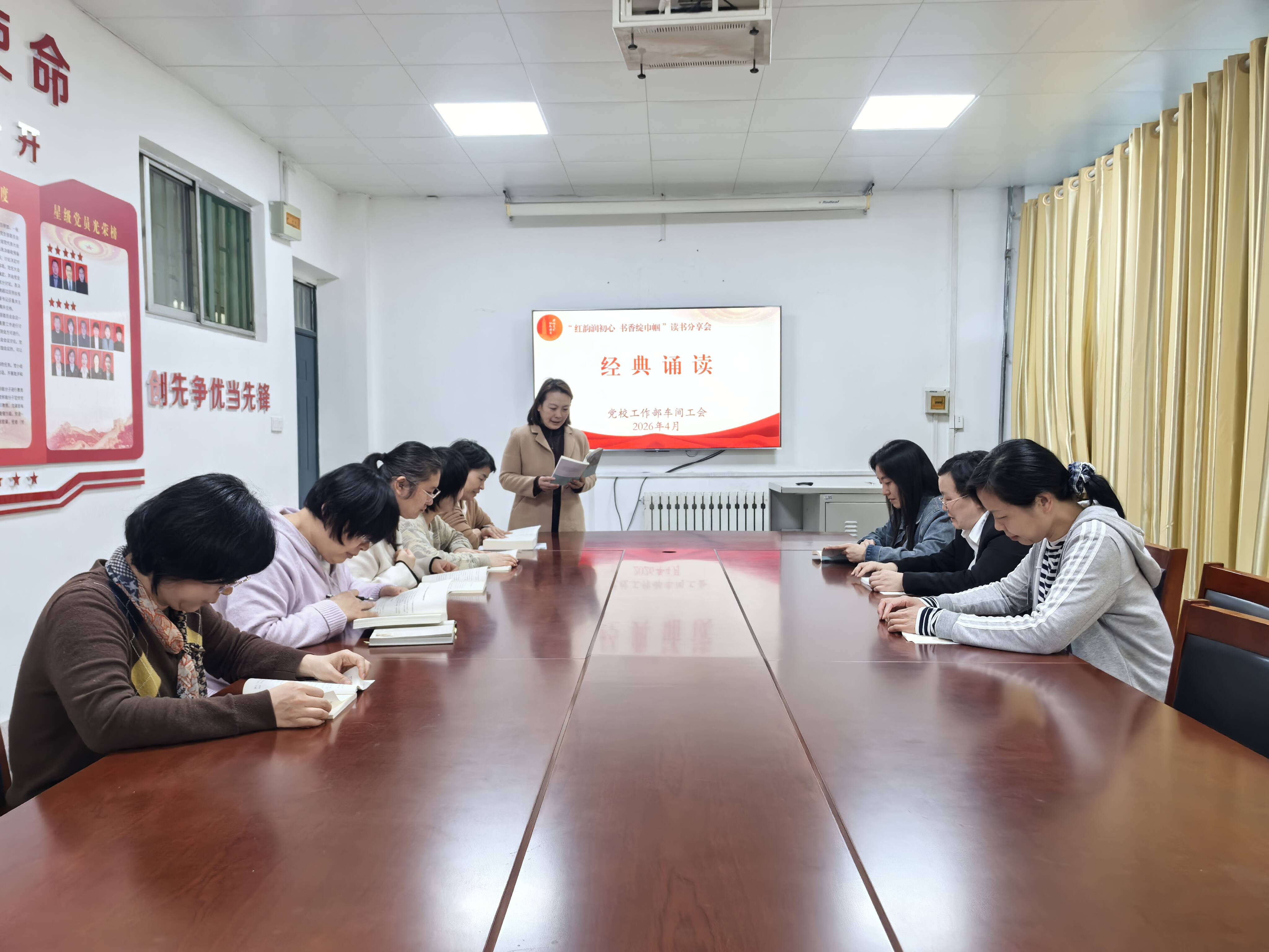 在第 31 个世界读书日来临之际,为深入学习贯彻习近平总书记关于推动全民阅读、建设书香社会的重要论述精神,响应全民阅读活动周号召,进一步丰富女职工精神文化生活,提升女职工综合素养,党校工作部精心策划并组织开展了“红韵润初心 书香绽巾帼”女工读书分享活动,全体女职工齐聚一堂,以书为媒、以读会友,在墨香浸润中凝聚巾帼力量。