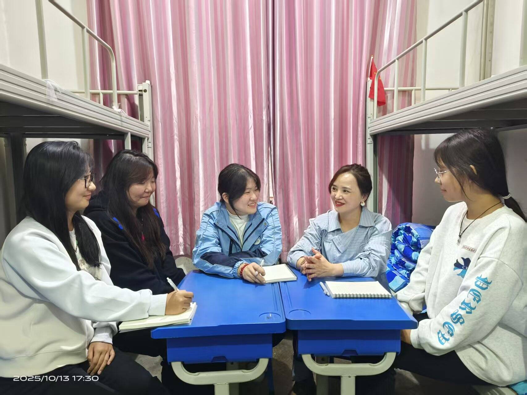每周22节专业课的教学任务已十分繁重,但她仍坚持每天清晨7点准时到校,走进学生寝室手把手教大家整理内务,从叠好一床“豆腐块”被子到摆放整齐生活用品,用细节培养学生的自律习惯;傍晚,她总会准时出现在晚自习课堂,目光细致地掠过每一张课桌,从学生的眼神里捕捉思想动态,从细微的情绪变化中察觉需求。