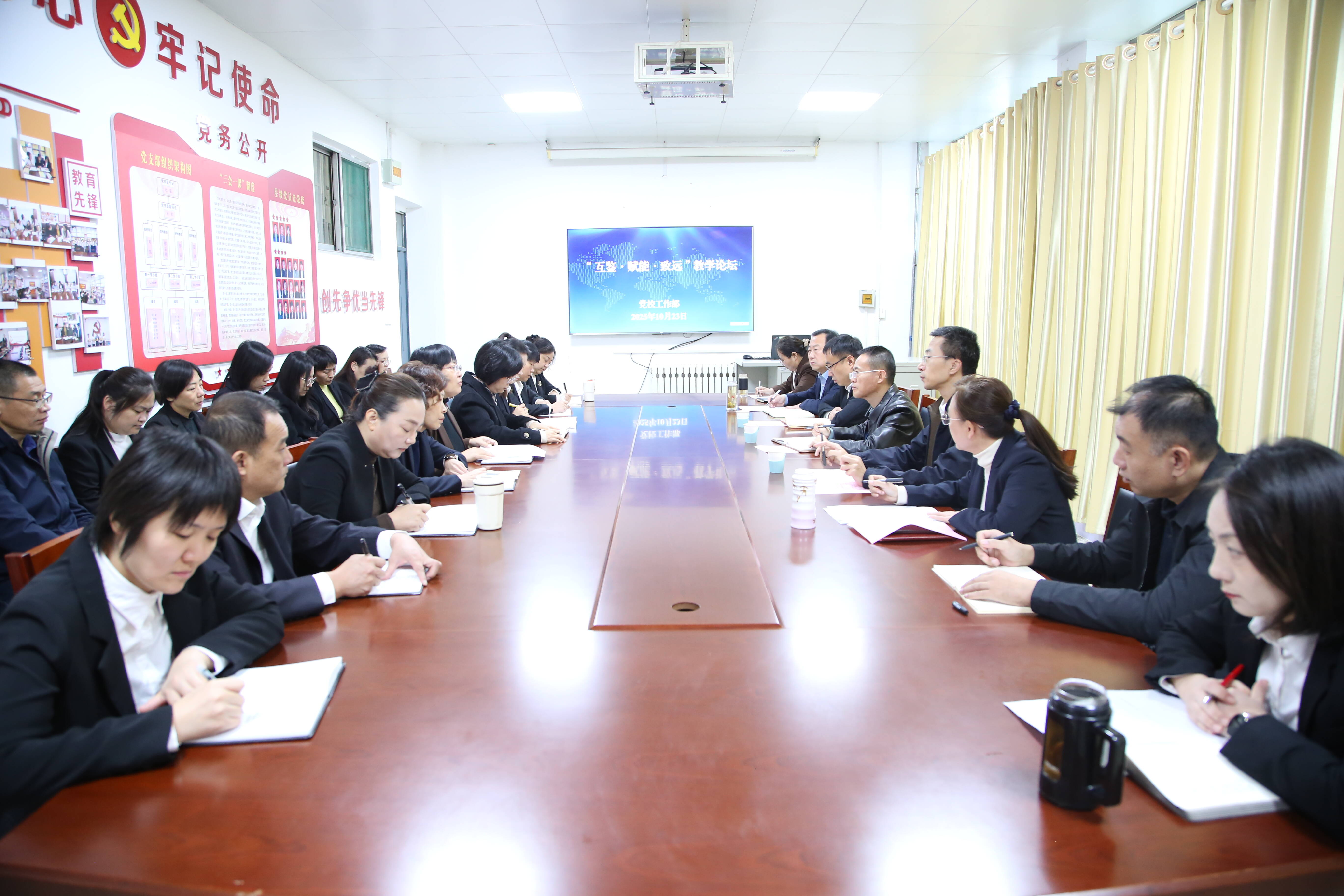为深化教学改革、总结教学经验、破解教学难题,近期,党校工作部成功举办“互鉴·赋能·致远”教学论坛活动。活动得到教培中心领导的高度重视,教培中心党委书记、主任李小义和部门分管领导亲临现场指导,党校工作部全体教职工参加活动。