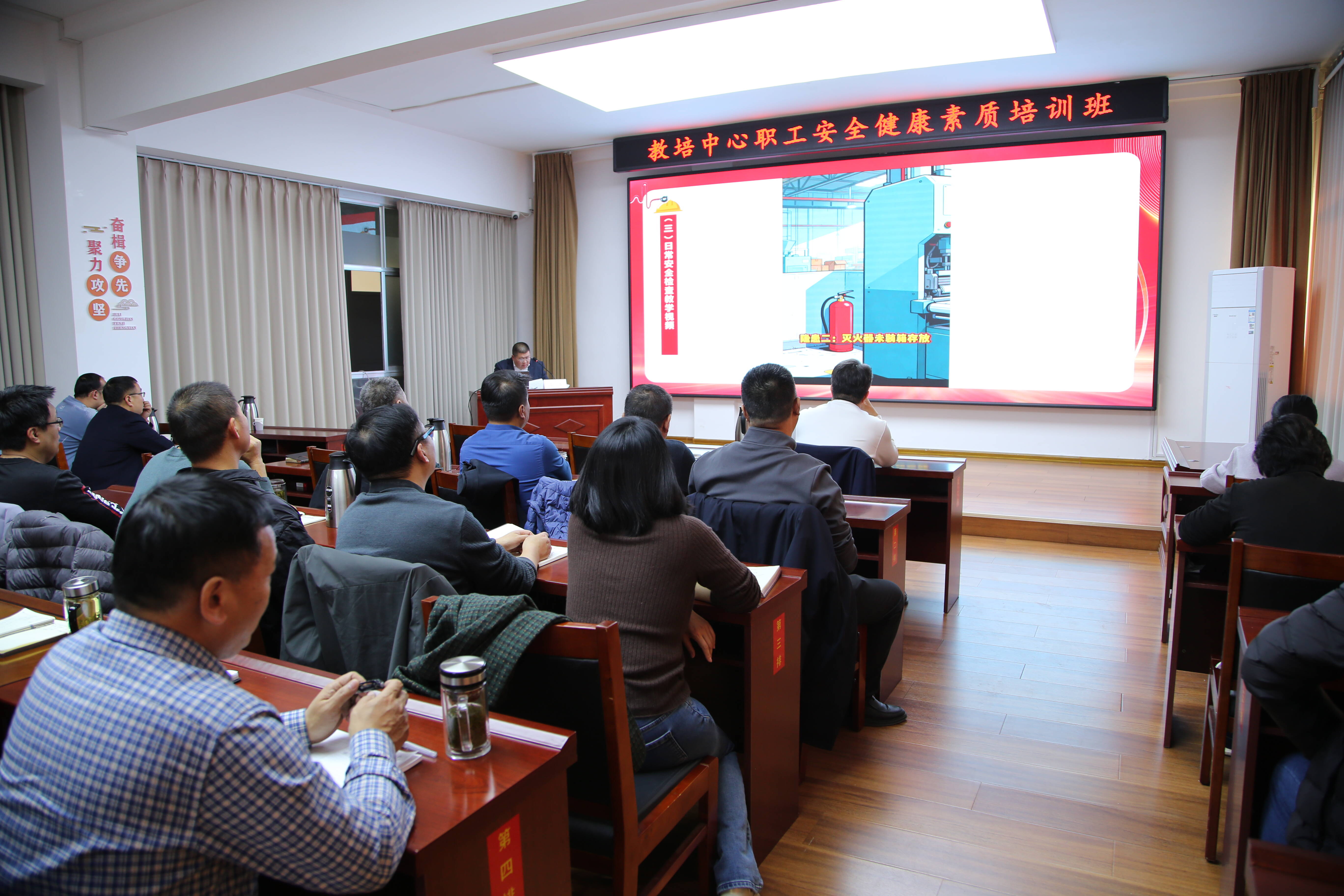 培训过程中,授课老师以 “理论讲解 + 案例剖析 + 实操演练”的模式,让枯燥的安全健康知识变得生动易懂;在安全知识模块,用“条文 + 案例”的形式解读职工在安全生产中的注意事项和防范意识;通过播放典型安全事故视频,直观呈现忽视安全操作引发的严重后果,让“安全无小事”的理念深入人心。同时,针对机械操作、用电安全、消防安全等岗位常见风险,现场演示设备日常检查流程、灭火器使用方法,手把手指导职工掌握风险排查与应急处置技巧。