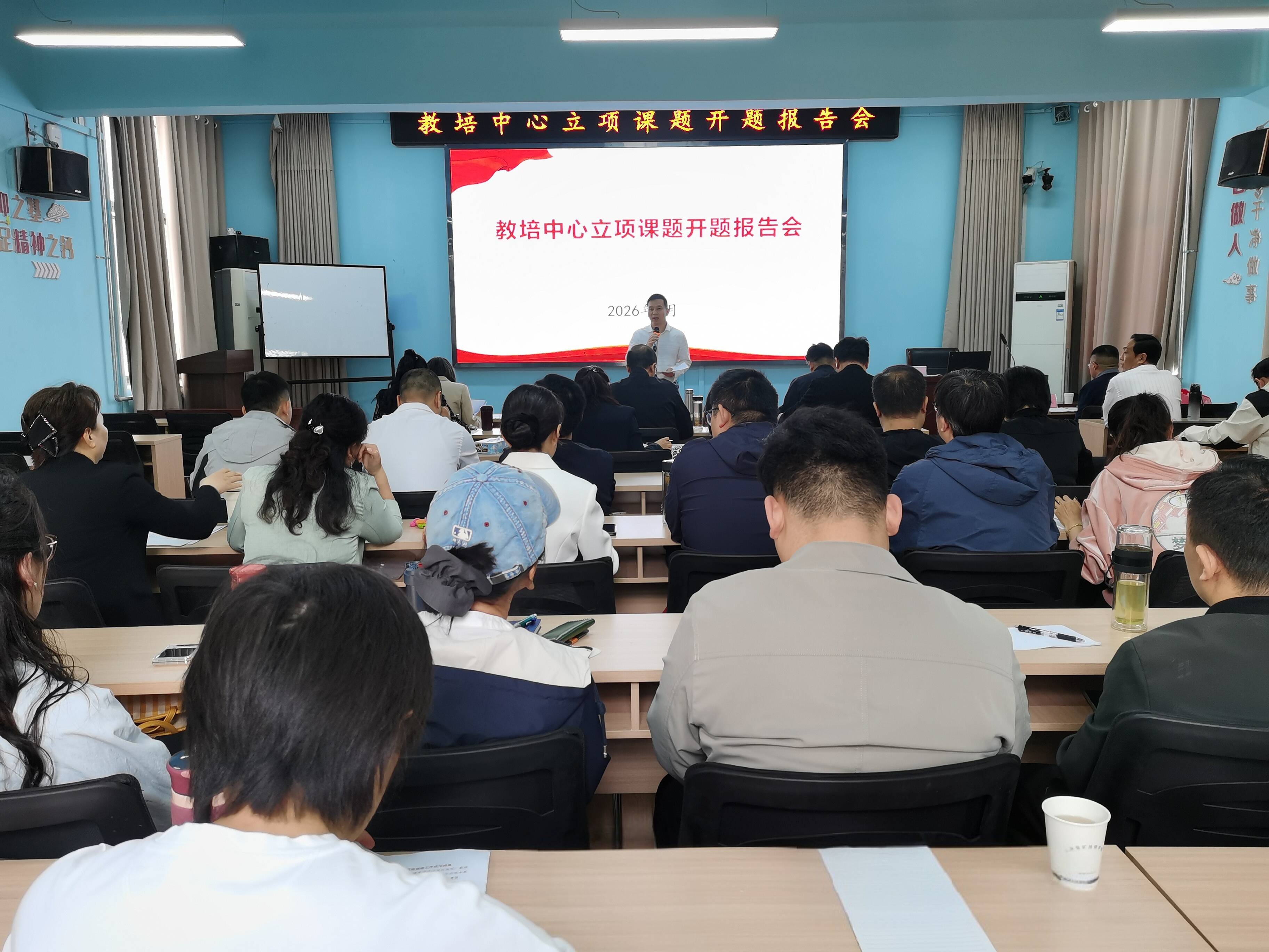 为扎实推进教培中心立项课题研究,确保研究方向精准、方法科学规范、进度有序可控,4月28日上午,教培中心在本部校区主教学楼116教室进行2026年度立项课题开题报告。各教学部室分管负责人、各立项课题主持人及课题组成员代表共40余人参加活动。