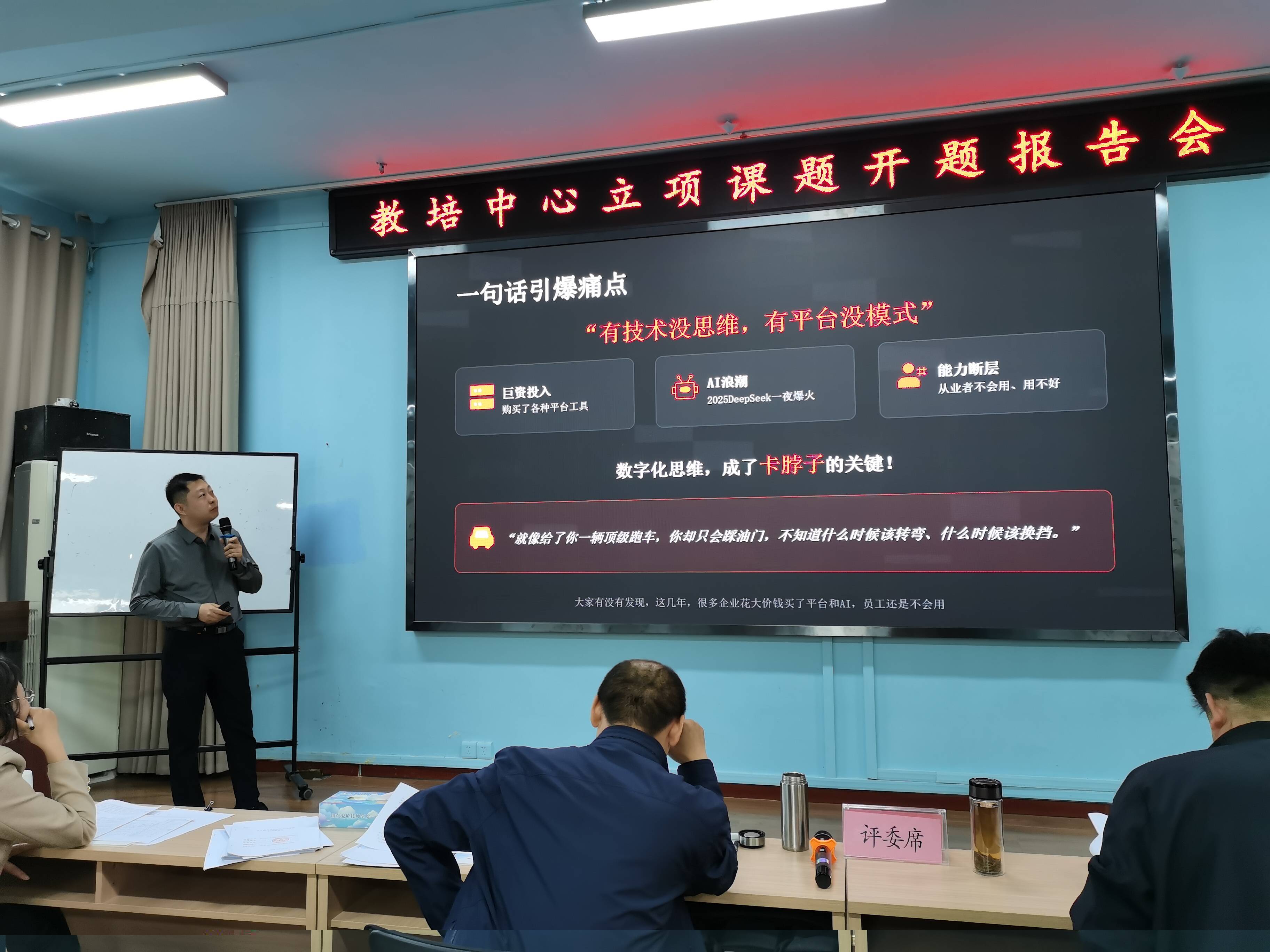 各课题汇报人围绕课题的基础与背景、主要内容、研究方法、进度与时间安排、预期成果及分工等方面进行了系统汇报。2026年度立项课题共15项,涵盖管理创新、课程开发、校本教材编写三大类别,研究内容聚焦精益管理、AI赋能教学、数字化思维培养、传统文化传承、专业技能教材建设等多个领域,现实针对性强、实践价值突出。